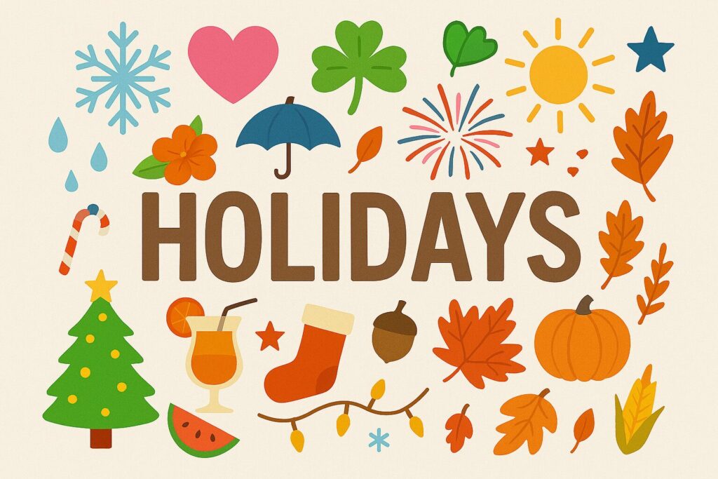 Some holidays change their dates from year to year. Some, like Thanksgiving or Memorial Day, are on a particular day, like the fourth Thursday or last Monday. Others change because they are based on other holidays or are sponsored by organizations that set the date each year.